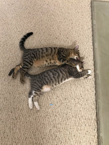 The kittens will likely play together and be active so they have decreased risk of obesity and associated illnesses. If you have two kitties that like each other, they may groom each other to help maintain some personal hygiene.